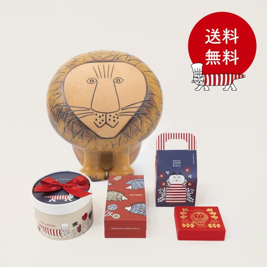 大きな〈ライオンマキシ〉に、キハチのお菓子が全4種ついてきて、送料4,400円が今だけ無料。