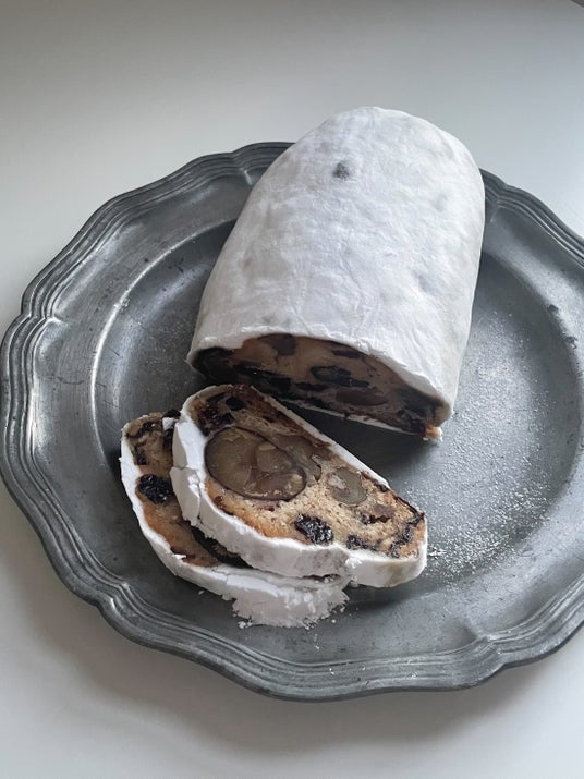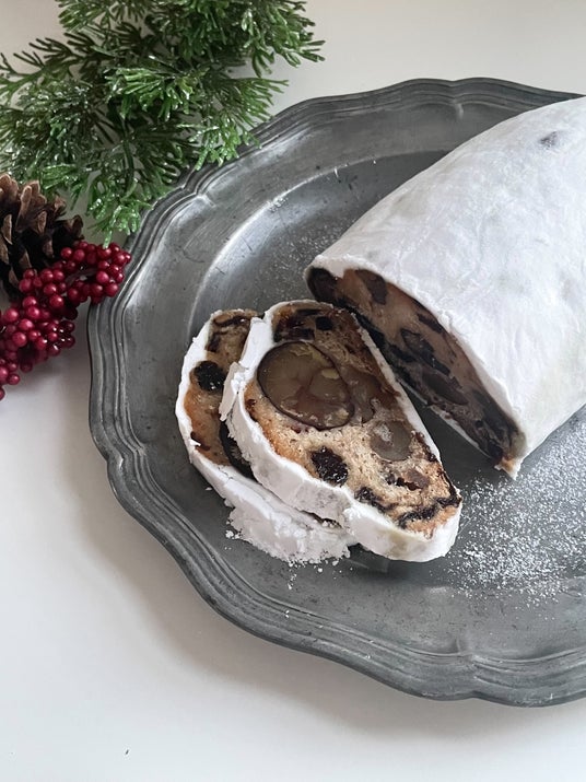 クリスマスを待ちながら少しずつ味わうドイツの伝統菓子、シュトーレン。発祥は15世紀のドレスデンといわれ、粉糖をまとった細長い姿は“幼子イエスをくるむ産着”に由来するとも。日を置くほど香りがなじみ、味わいが深まる熟成菓子として知られています。