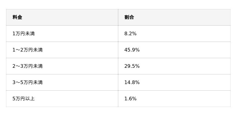 1回の料金では、「1~2万円未満」が45.9%でほぼ半数。比較的挑戦しやすい価格帯で利用されていることがうかがえます。