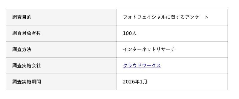 フォトフェイシャルに関するアンケートの概要