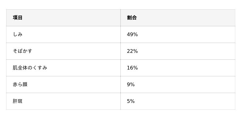 続いて「そばかす」「肌全体のくすみ」という回答が多く見られました。