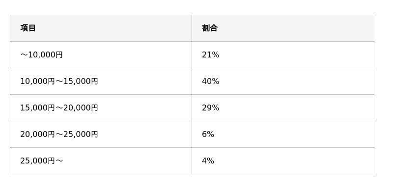 全体の9割以上が2万円以下と回答しています。