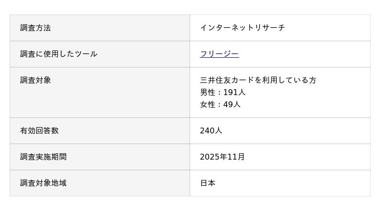 ココモーラでは、ユーザーの生の声を調査するため「三井住友カードに関するアンケート調査」を行いました。アンケート調査の概要は以下の通りです。