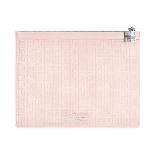 ジャガードデザインのフラットピンクポーチ。