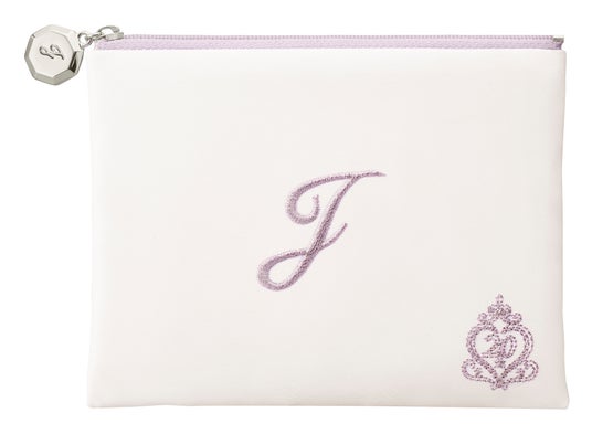 ラベンダーカラーで「J」と20周年ロゴの刺繍が入った限定ポーチ付き。