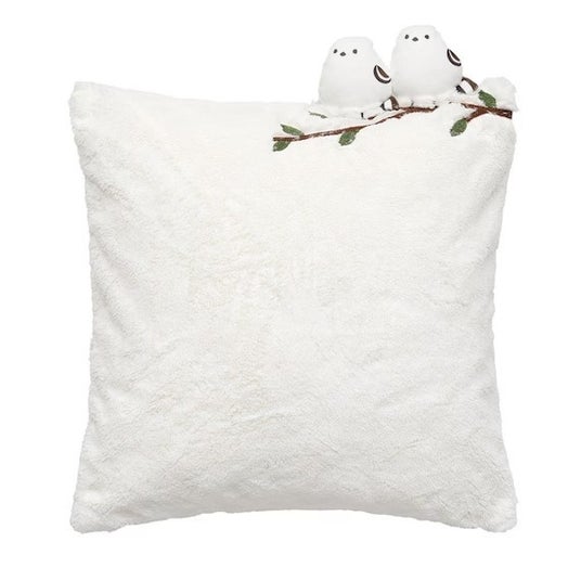2匹の寄り添うシマエナガがかわいいクッションカバーです。