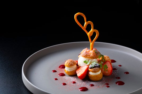 デザートはフランスの伝統菓子プロフィットロールをアレンジし、2種類のクリームとアイスクリームがコク深い贅沢な余韻を演出いたします。