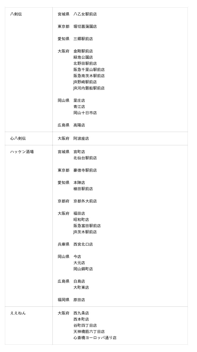 事業内容:「八剣伝」「餃子食堂マルケン」「酔虎伝」「居心伝」