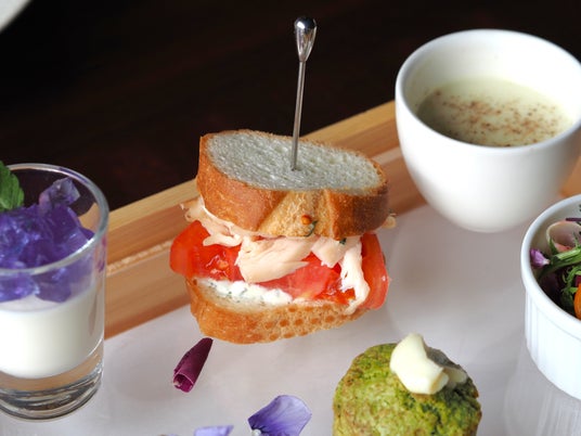 ・鶏むね肉のマリネとトマトのサンドイッチ サワークリームとハーブのソース