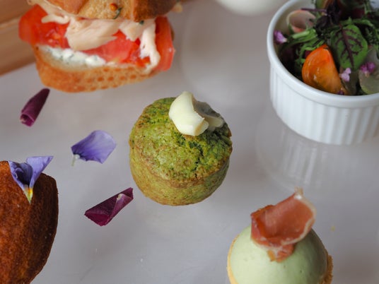 さらに、「ほうれん草とベーコンのキッシュ」や、心まで温まる「ジャガイモのポタージュ」など、一口サイズで食べやすいセイボリーを豊富にご用意。カフェ利用はもちろん、お食事としてもご満足いただける構成に仕上げました。