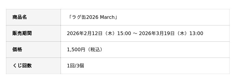 2026年2月12日(木)15:00より、「ラグ缶2026 March」の販売を開始いたします!