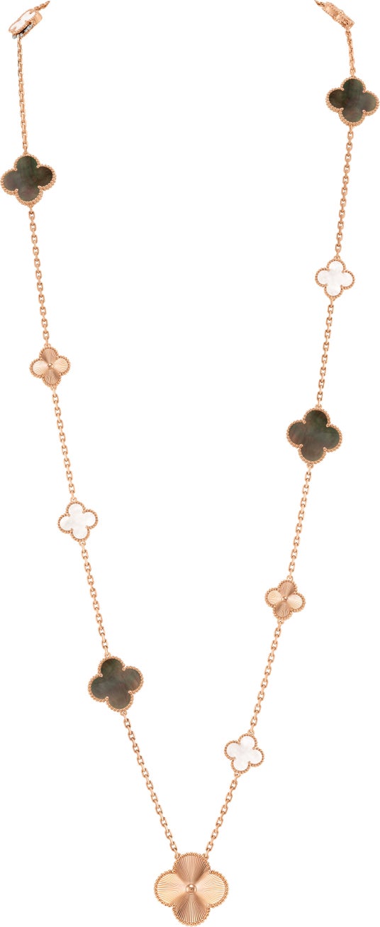 アルハンブラ コレクションは、長年にわたり、ヴァン クリーフ&アーペルの幸運のアイコンであり続けています。1968年の誕生以来、その象徴的なデザインには、用いる素材や機能に合わせて洗練された解釈が重ねられてきました。この度、メゾンに受け継がれる「形を変えるジュエリー」の伝統を取り入れた新作を発表いたします。2つのロングネックレスと2つのリバーシブル リングがコレクションに加わり、豊かなニュアンスに富んだシンフォニーを奏でます。