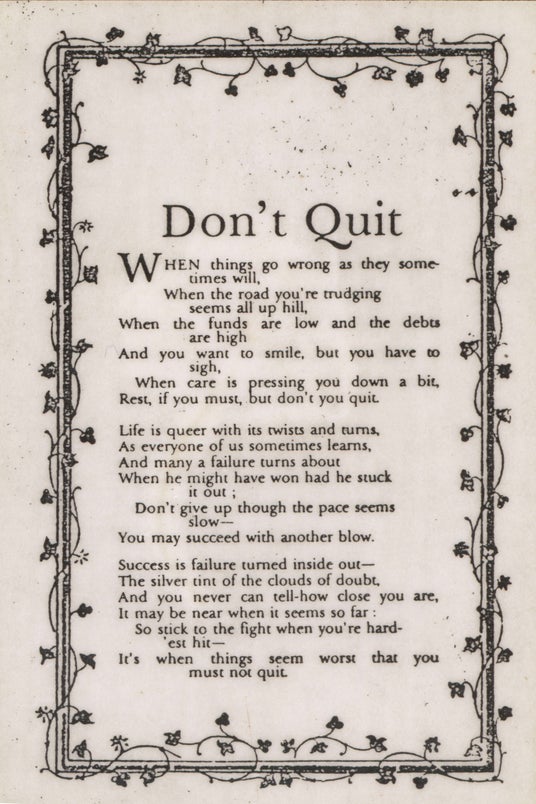 ジョン・グリーンリーフ・ホイッティア作(推定)の詩「Don’t Quit」