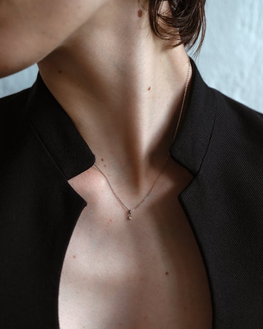 6本爪でセッティングされたダイヤモンドが動くたびに胸元で繊細な光を放つネックレスは、イエローゴールドとシルバーの2カラー展開。オフィスにも休日スタイルにも映える、品格ある一粒ダイヤモンドはファーストジュエリーにも最適です。