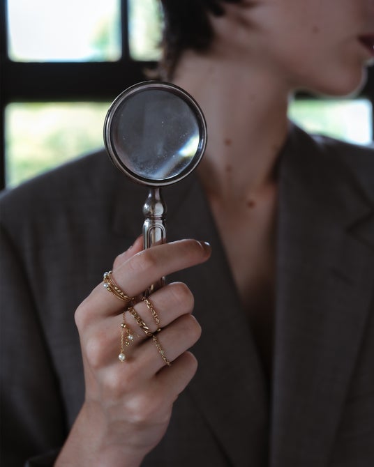 冬の装いに華やかなきらめきを添える淡水パールのチェーンリング。小さな淡水パールとカットボールが揺れ、指先を軽やかに彩ります。スライドアジャスターでサイズ調整も自在。着ける指や向きで表情が変わり、動くたびにパールが夜空の星のように輝きます。重ね着けも楽しめ、手元に明るさと洗練さをプラスします。