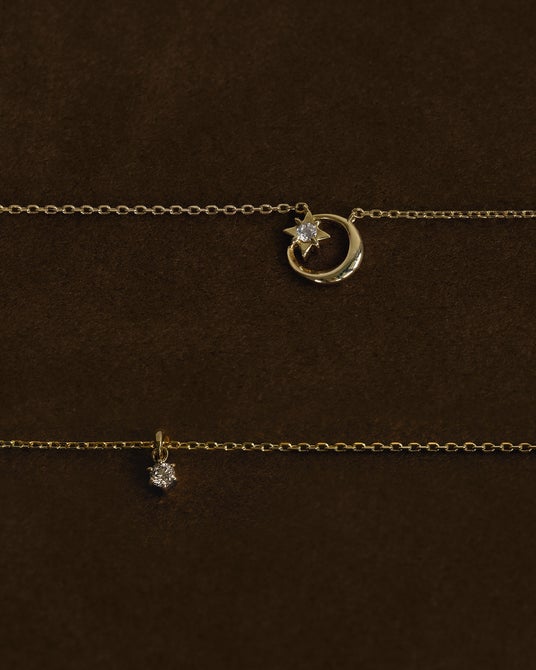 夜空にそっと輝く三日月と星をモチーフにした、ロマンティックなネックレス。成長や希望を象徴する三日月と、願いを託す星を組み合わせ、身に着ける人に幸せをもたらすデザインに仕上げました。