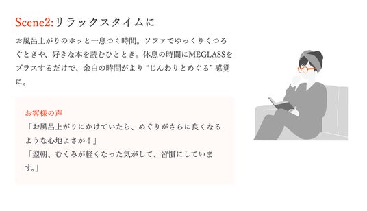 MEGLASSは、「巡らす、グラス」 をコンセプトに開発したリカバリーアイウェアです。