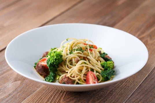 菜の花とキャベツ トマトのスパゲッティ