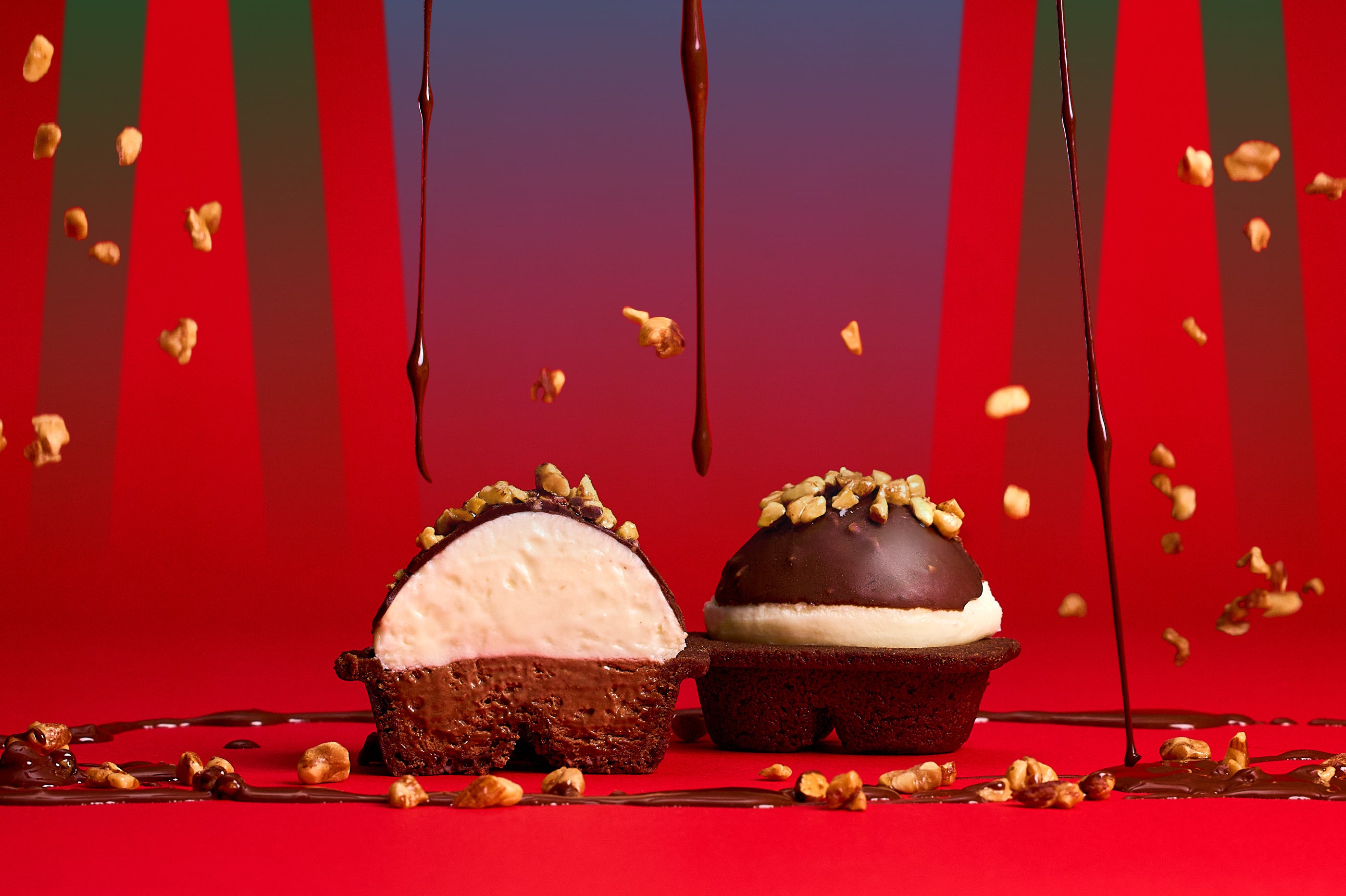濃厚なのにエアリーで軽い舌触りの生ガトーショコラに、ふわとろのチーズムースがまろやかに調和した「チーズワンダージャイアントブラック」。飴がけしたナッツと、パリッと割れてすぐ溶けるチョコレートコーティングがより多層的な食感をもたらし、リッチな味わいと余韻が残る即完売必至のバレンタイン限定の新商品・ショコラナッツ生チーズケーキです。