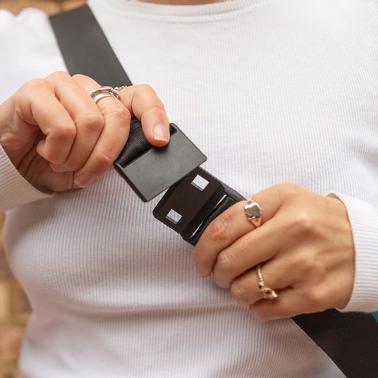 マグネット式のクイックリリースバックルを新採用。近づけるだけでカチッと自動的にロックし、外すときはスライドするだけで簡単にリリースできます。