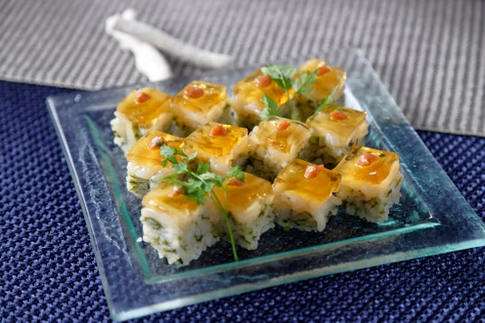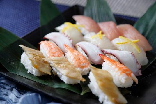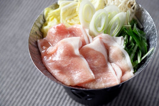 ディナー限定:豚肉のしゃぶしゃぶ / にぎり寿司(鮪・えび・穴子・タコ・鯛の昆布〆 柚子風味)