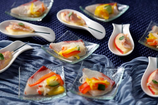 魚介のカルパッチョ/自家製 冷製アイスバインとリンゴのピンチョス