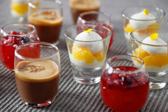 グラスデザート 3種(ビターチョコレートプリンとキャラメルソース / ストロベリームースとジュレ / ホワイトチョコレートムースと柑橘)/ ホットアップルクランブル / チュロス / アメリカンワッフルとコンディメンツ(ワゴンスイーツ)
