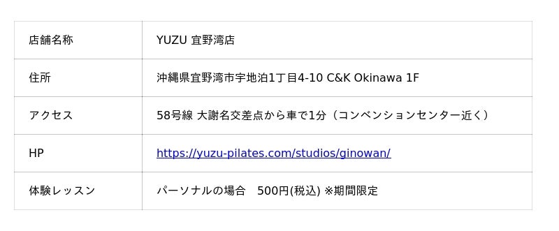 ▶︎https://yuzu-pilates.com/studios/ginowan/