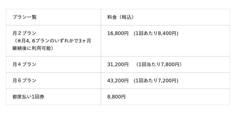 さらに、他の多くのピラティススタジオと比べて低価格なだけでなく、月に通う回数を月2・月4・月6プランの中からご自身のライフスタイルやご都合に合わせて調整して選択いただくことが可能となっており、お客様のピラティスの習慣化を徹底サポートさせて頂きます。そして、「マシンピラティスを生活の一部に。」を理念として長く続けていただく工夫を加え、お客様の中には継続月数が1年を越えて通う人も多数存在しています。