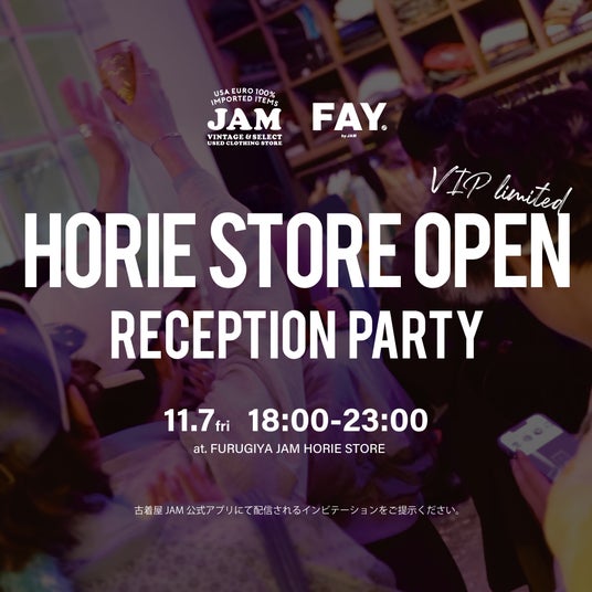 グランドオープンを記念し、古着屋JAMとFAY by JAMの両ブランドにて「古着屋JAMの現在地」を感じていただけるイベントを開催いたします。