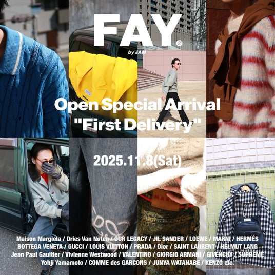 一方でFAY by JAMでは、バイヤーが厳選して買い付けた【Open Special Arrival 「First Delivery」】と【FAY Original Item 「OSAKA Release」】【FAY Original Novelty】の2つのイベントと、FAYでもオリジナルノベルティをご用意しています。