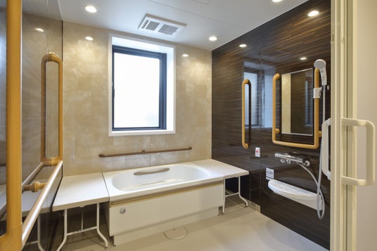 館内は全てバリアフリー対応で足が不自由な方、車いすで移動される方も安心安全でご利用いただけます。浴室にはスライド式の手すりをはじめ、リフト浴やストレッチャー浴を備えております。また、浴室と脱衣所の2か所にナースコールを設置し、安全面に配慮した設備環境を整えております。