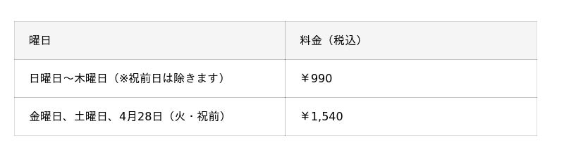 ※既にご予約をいただいたお客様につきましても4月20日(月)~4月30日(木)の期間では、990円(税込)~にてご案内いたします。