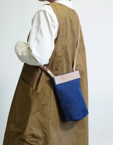 日本製の厚口帆布に蝋を浸透させ、強度と防水性を高めたポシェット。