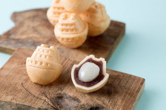 船型の可愛らしい、こしあんと求肥餅を挟んだもなか菓子です。