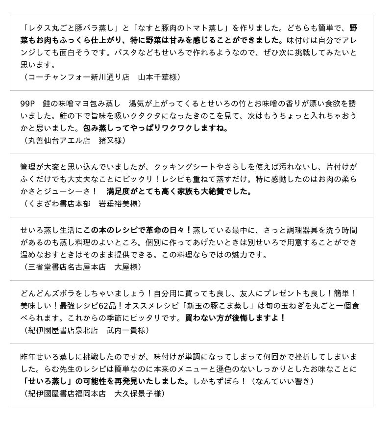 Instagramで毎日のせいろ蒸しレシピを紹介し始めたところ、ごはんにぴったりのレパートリー豊かなメニューと、その簡単さ、おいしさが大きな話題となり、フォロワー数は18万人を超える。