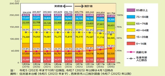 2030年以降、西東京市は、高齢化率が高くなること、要介護認定者の数が横ばいであることなどが予見されており、将来を見据えた「予防事業」に重点を置き取り組んでいます。