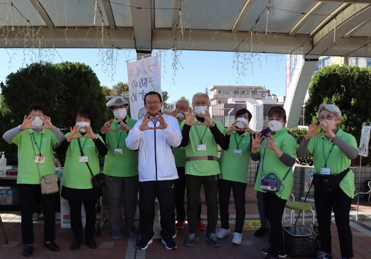西東京市市長 池澤隆史(左から4番目)とフレイルサポーターの皆さん。田無駅前イベントにて。