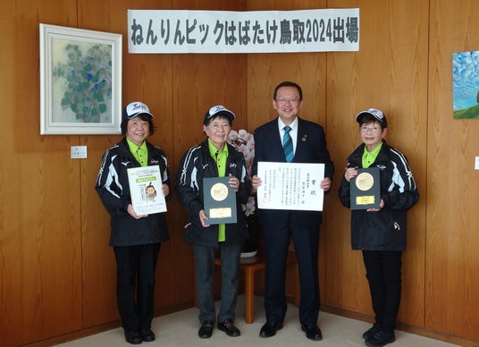 左から、赤岩美由紀さん、豊富満子さん、池澤隆史市長、植田和子さん