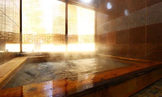 とろみのあるお湯で、湯触りも抜群。浴槽の檜の匂いが心を満たし、休息を誘う、“美人の湯”です。肌内部にある水分や油分の蒸発を防ぐ効果がある「メタケイ酸」を多く含みます。古い角質層の溶解・除去をし、肌を滑らかにしてくれます。