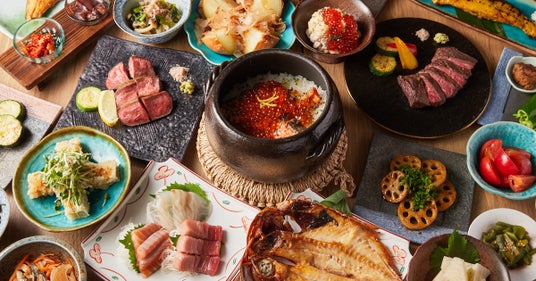 季節の味覚を一度に楽しめる炉端BeeNのコース料理。