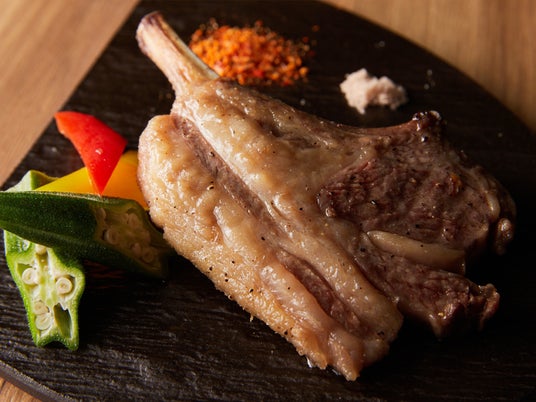 脂の甘みと旨みが際立つ『骨付き仔羊の炭火焼き』