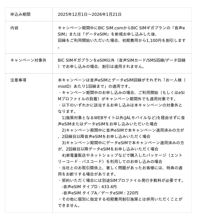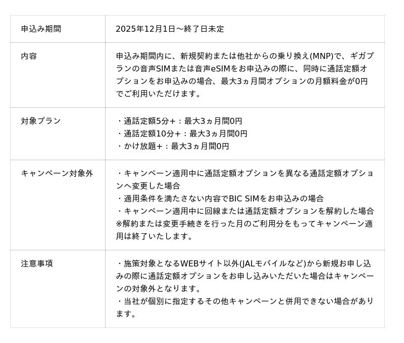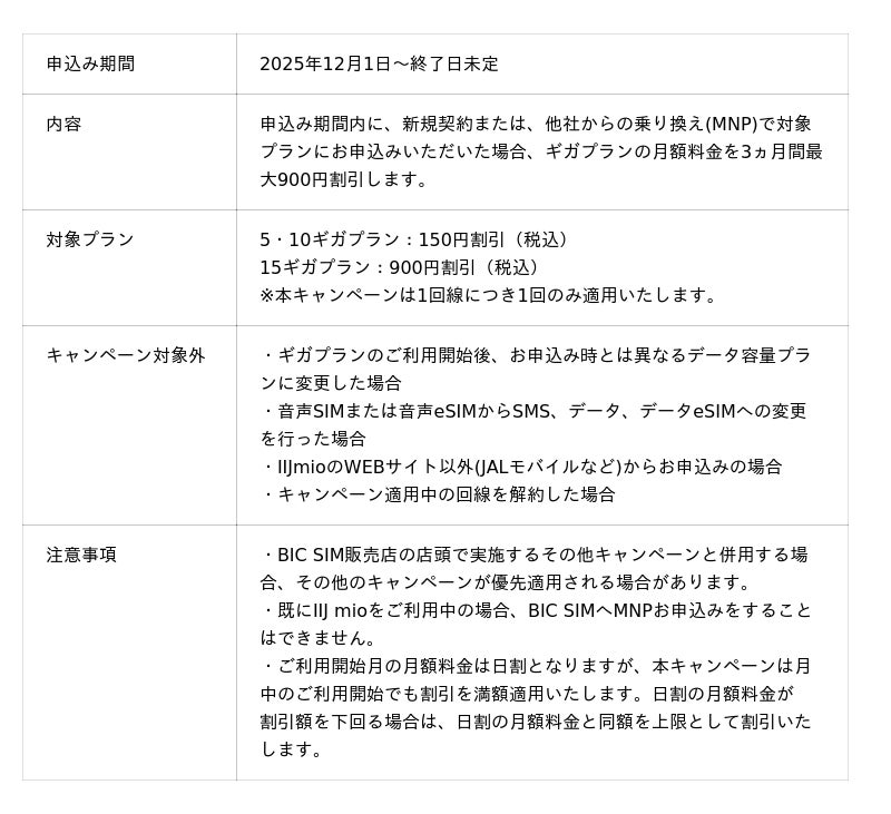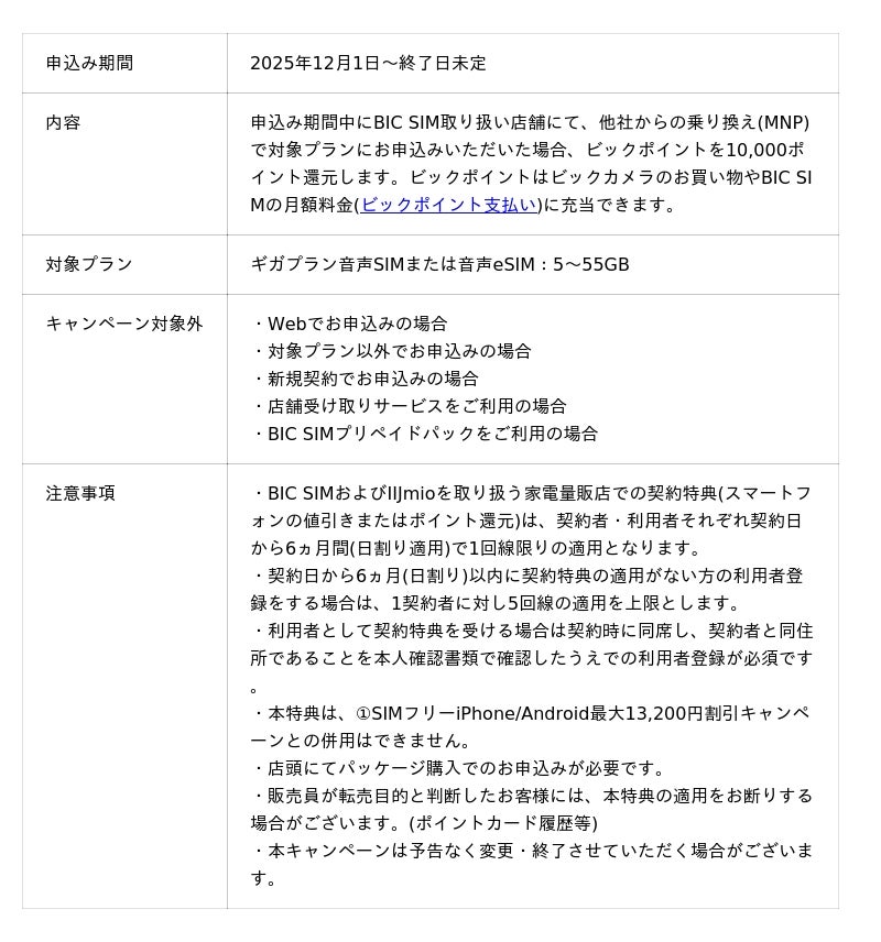 [店頭申込み限定]BIC SIMキャンペーンの詳細は以下からご確認いただけます。