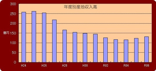 年度別産地収入高 ※桐生市繊維振興協会のウェブサイトより引用