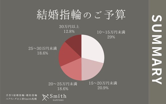 株式会社一宝(所在地:北海道札幌市)が運営する、北海道の手作り結婚指輪・婚約指輪専門店「工房Smith札幌本店」は、2025年(1月~12月)にご来店いただいた多くのお客様の声をまとめました。 そこで、この1年間で先輩カップルが実際に選んだご予算や、お店選びの決め手となったポイントを「人気ランキング形式」で発表いたします。2025年のブライダル市場の総括として、これから指輪選びを始めるおふたりにぜひ参考にしていただきたいトレンド情報です。