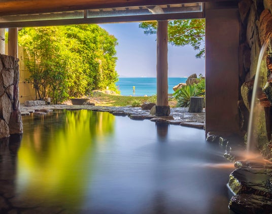 瀬戸内海国立公園内、海に昇る朝日や日本百名月に選ばれた鳴門ムーンロードを客室や天然温泉から一望するオーシャンフロントホテル。海を見晴らす洋室や和室、徳島の匠による阿波藍ルームなど旅のスタイルで選べる客室は15タイプ。2024年3月に徳島が誇る伝統工芸「大谷焼」アートプレートが彩る客室、7月には泊まれるアートギャラリー「ゴッホのヒマワリルーム」が誕生。