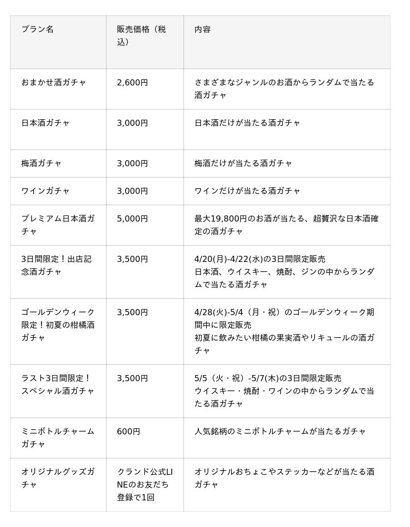 SNSで話題の「酒ガチャ」がリアルで体験できるポップアップストアを開催します。通常はオンライン上のみのサービスを、リアルなカプセルトイマシンで楽しめる体験型ポップアップストアです。当たるお酒の商品カテゴリが異なる酒ガチャや、ミニボトルチャームが当たる酒ガチャ、期間限定の酒ガチャなどが登場します。