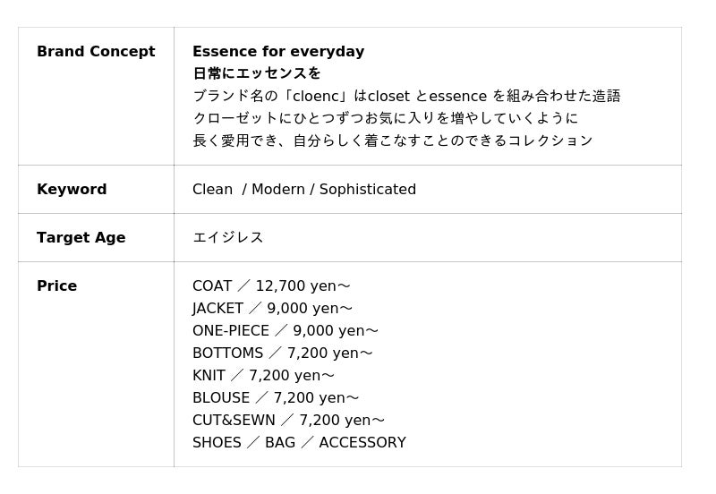 【cloenc:Brand Outline】