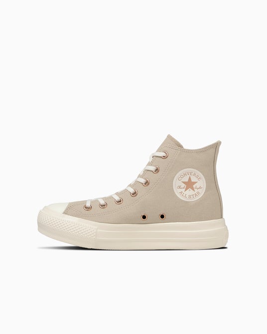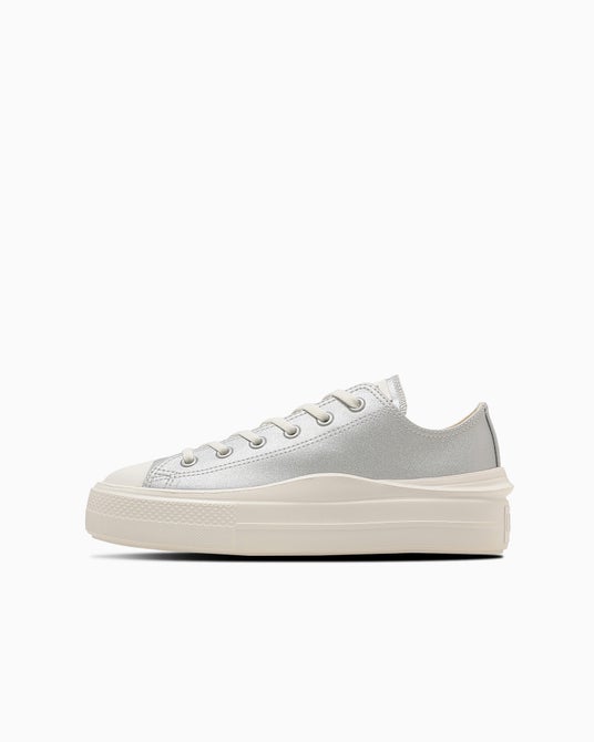 軽量モデル「ALL STAR LIGHT」をベースに、厚底ソールを組み合わせたウィメンズのアレンジモデル。 トレンド感のあるウェーブデザインのソールを採用し、アッパーにはシャイニーなメタリック素材を使用しています。 タンラベルやシューレースにはグリッターを取り入れ、足元にさりげないアクセントを加えています。
