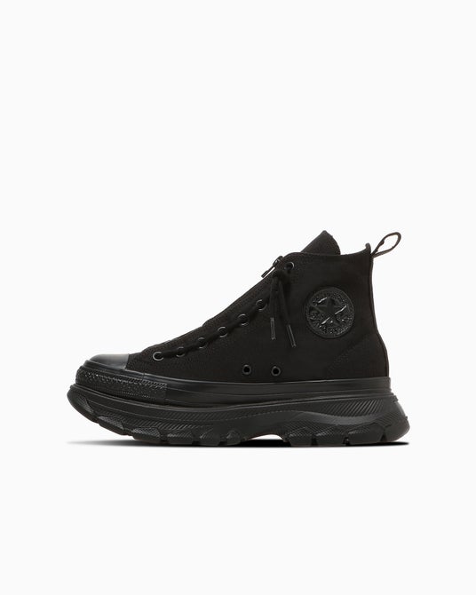 トレッキングシューズをモチーフにした「ALL STAR TREKWAVE」のパターンアレンジモデル。ボリューム感のあるアウトソールに、着脱しやすいセンタージップ仕様を組み合わせ、ブーツライクなデザインに仕上げています。ミッドソールにはインジェクションE.V.A.を採用し、インソールには高密度ウレタンフォームとラバースポンジを組み合わせ、優れた履き心地を実現。